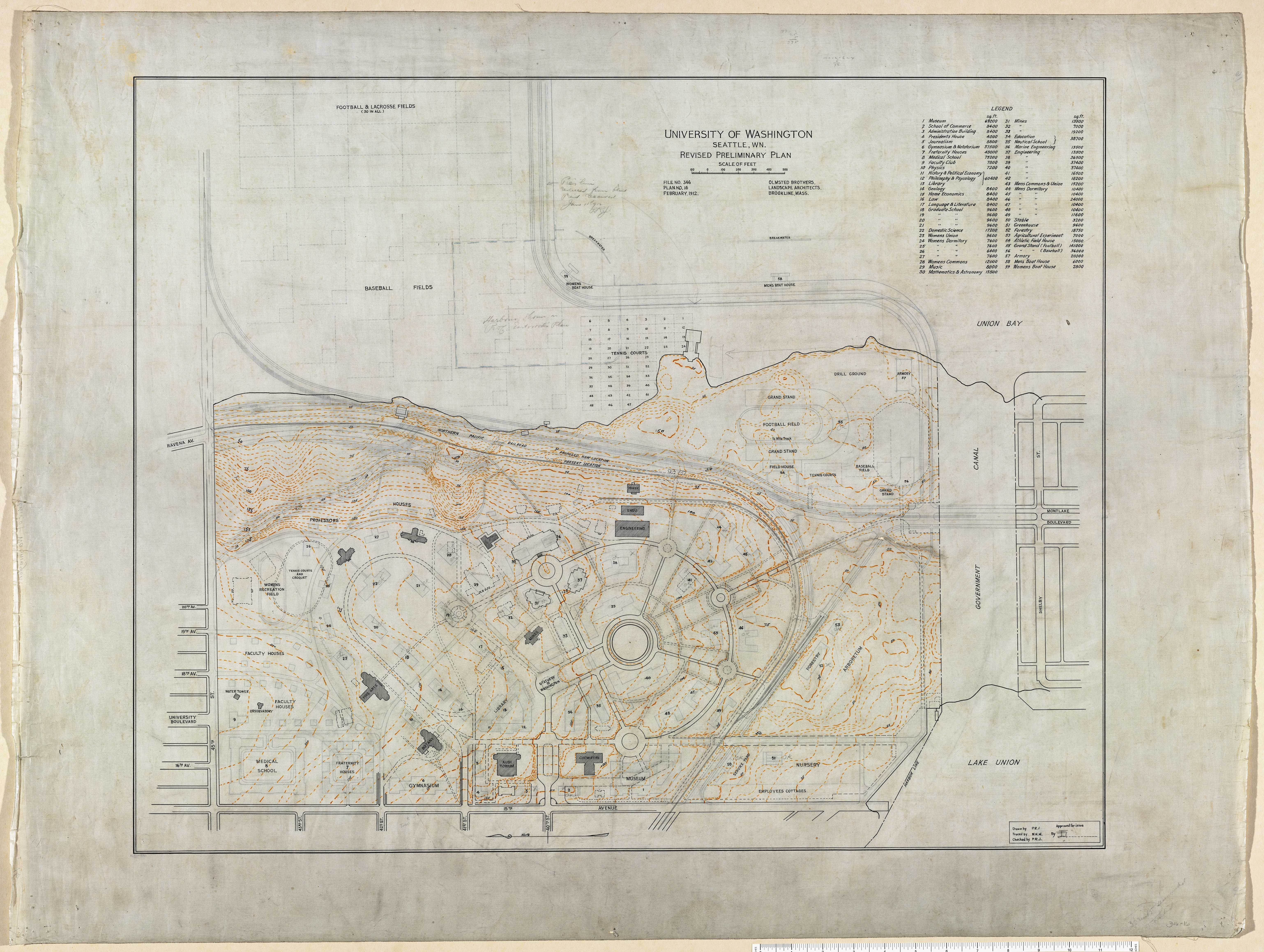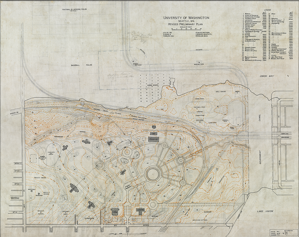 February 1912 Revised Preliminary Plan of the University of Washington campus. [00346-16]
