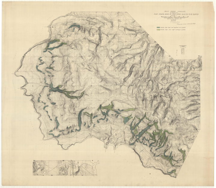 Plan Showing Areas on Steep Slopes/ Selected to be Planted/ ; Scale 800' = 1" [r]