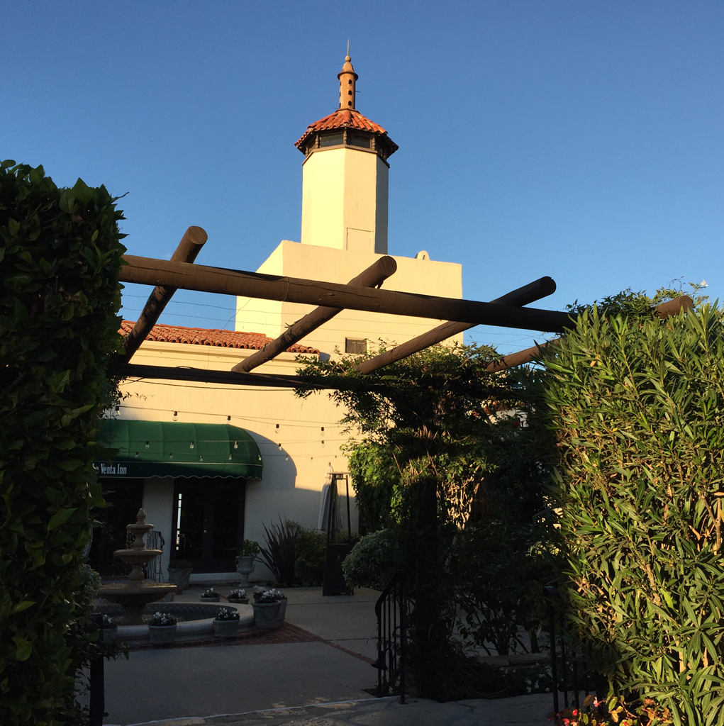 Courtyard of La Venta Inn with trellis. Compare with PVLD:4455 (000025791) {Vegetation - Structure - Building}