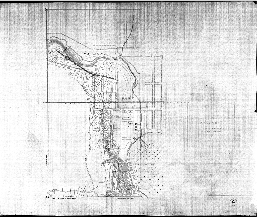 1903 Topographic survey of Sec9-25N-4E, Including the area of Ravenna Park. This was typical of the section surveys prepared for the Olmsted firm during their initial visit. [02690-8-sh6-4]