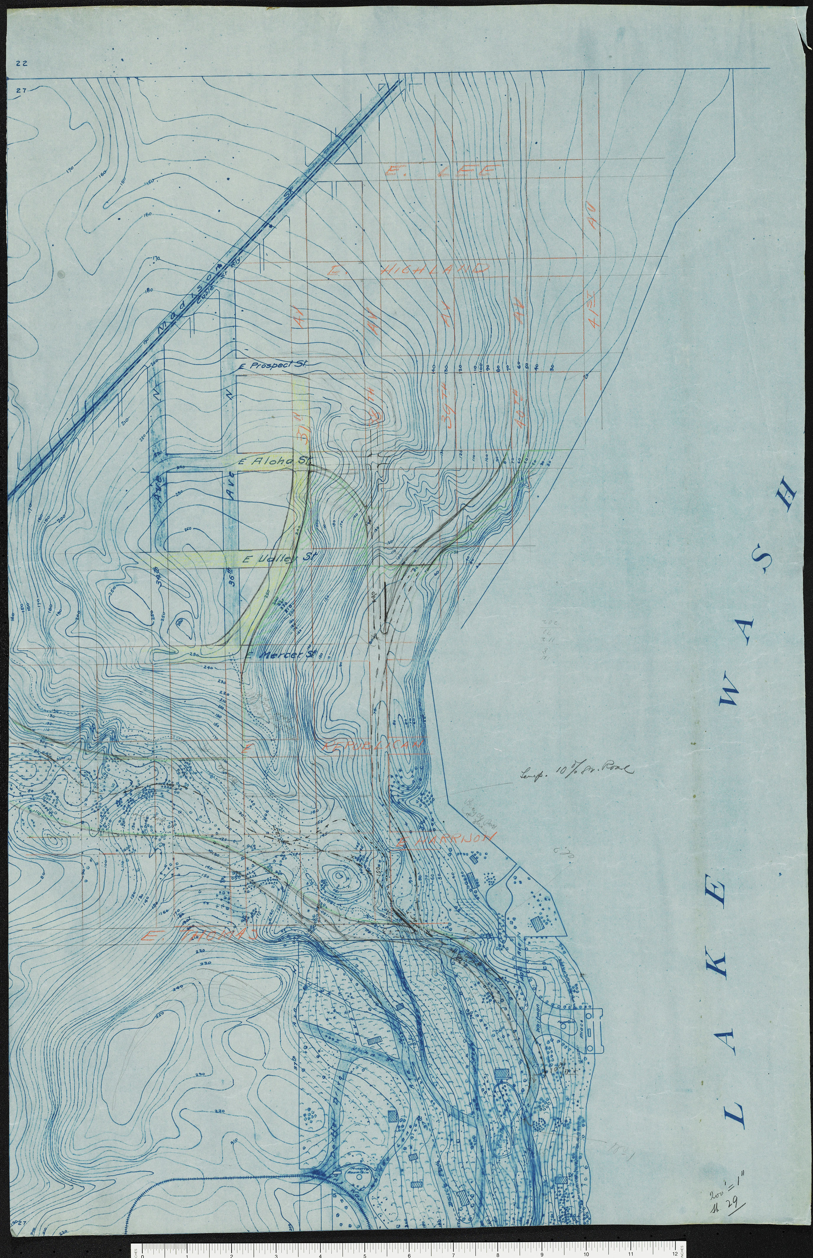 1903 Topographic survey of area south of Madison Street including Denny Blaine and Lakebview Park areas with notes by J.C. Olmsted and P.R. Jones, his assistant. [02690-08-sh09-29]