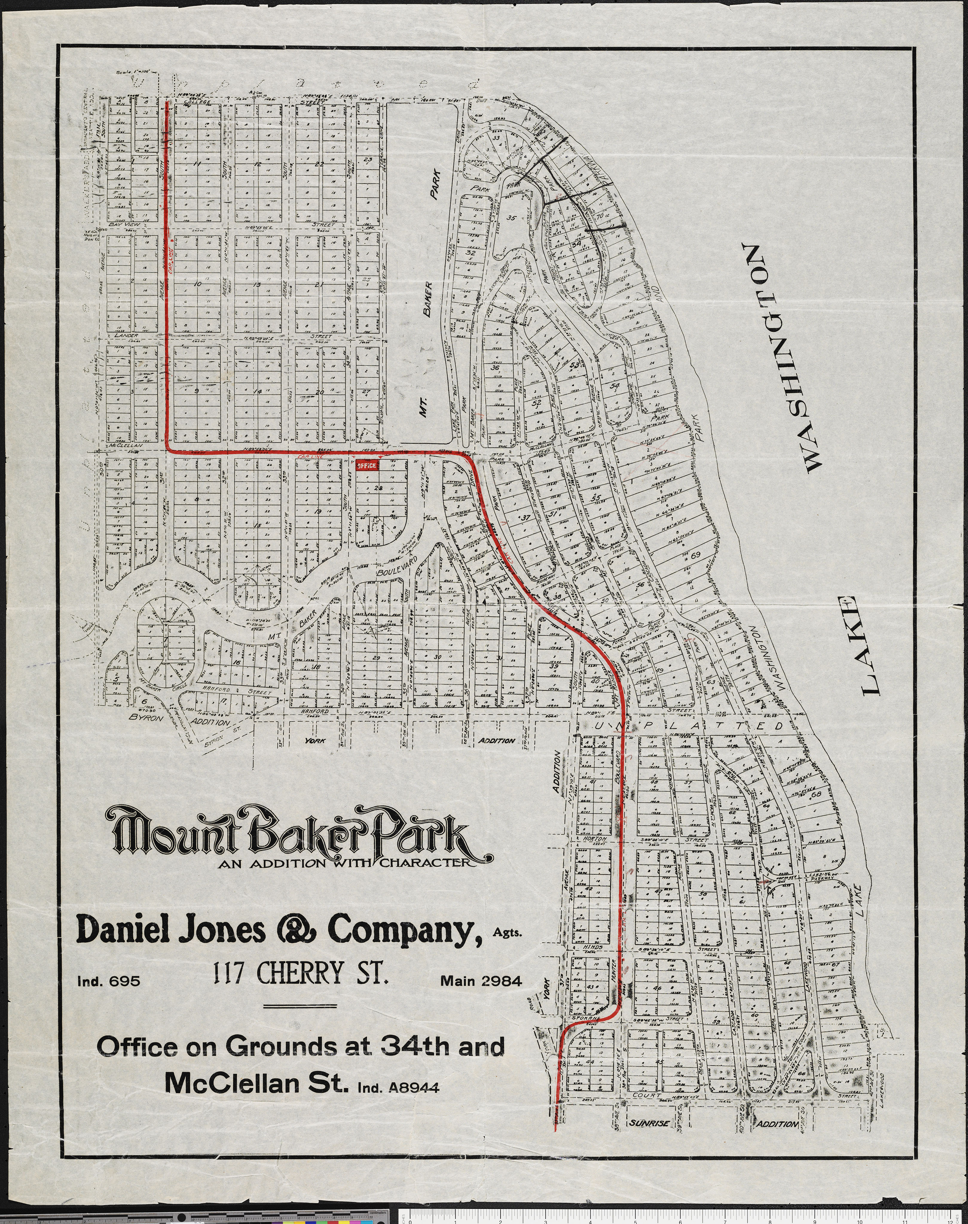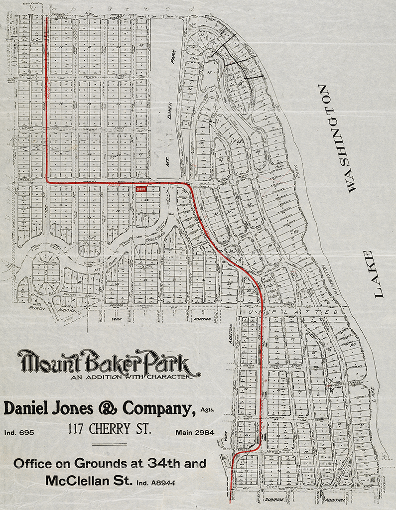 Mount Baker Park subdivision plan shows the property along Lake Washington set aside for Park and Parkway. (see job 03209) [02690-25]