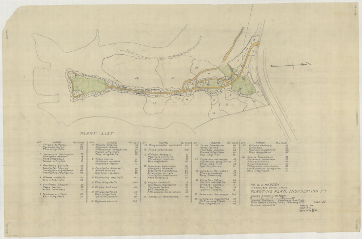 Planting Plan for Inspiration Point with plant list. [08061-25]