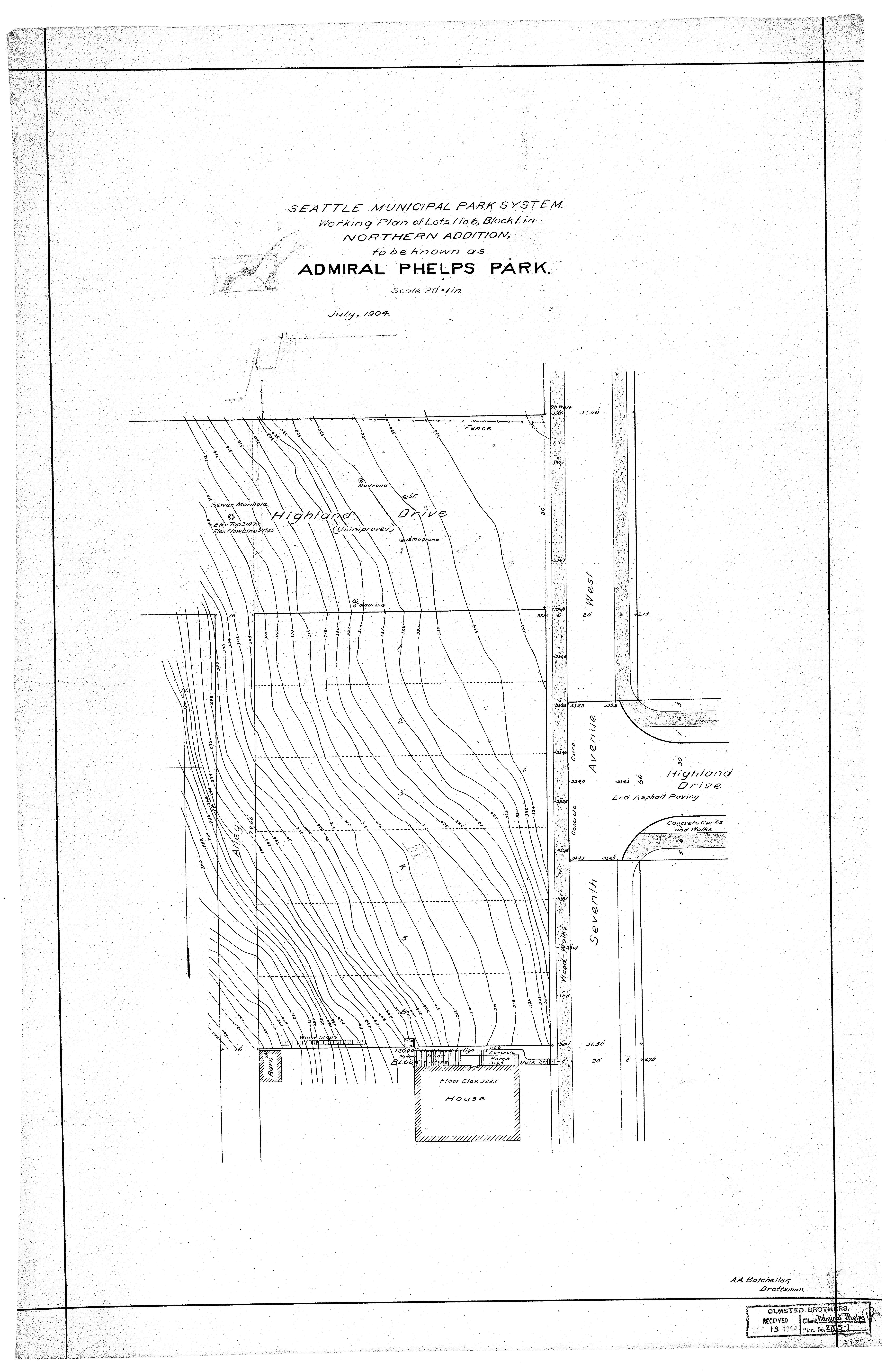 Seattle Municipal Park System Working Plan of Lots 1 to 6 Block 1 in Northern Addition to be known as Admiral Phelps Park