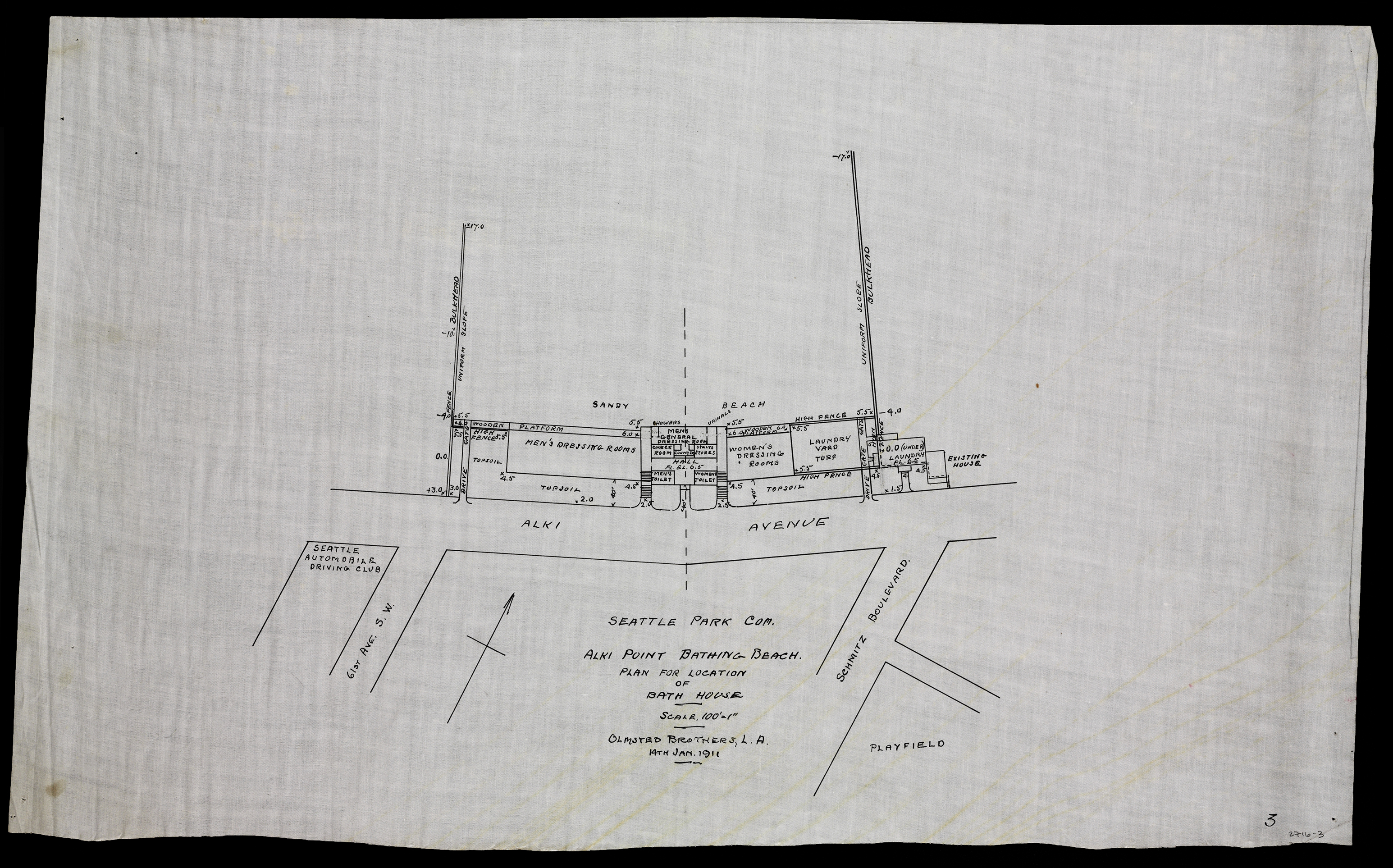 Seattle Park Commission / Alki Point Bathing Beach / Plan for location of bath house