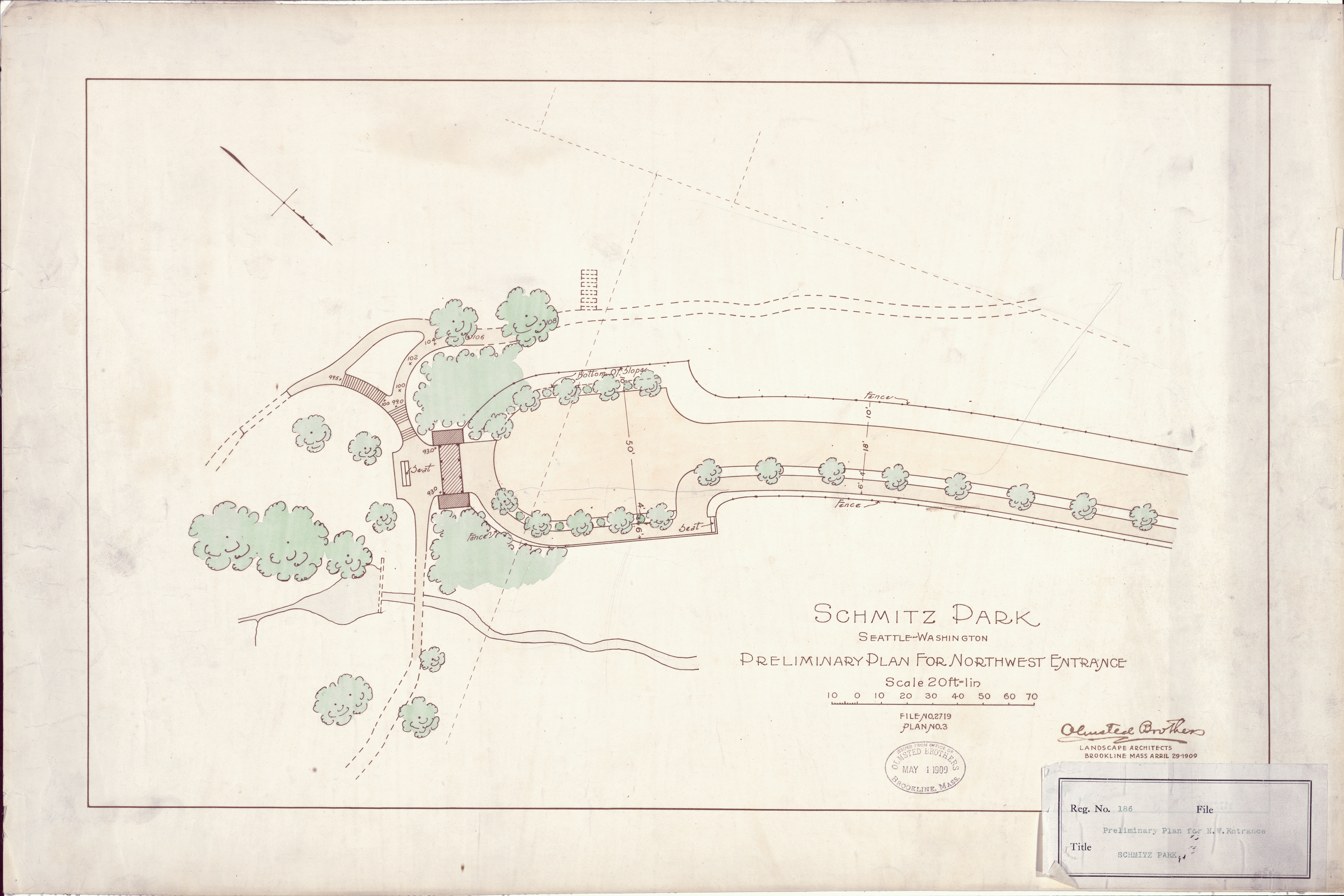 Colored presentation plan for Northwest Entrance to Schmitz Park. [02719-03_SMA (SMA 2320)]