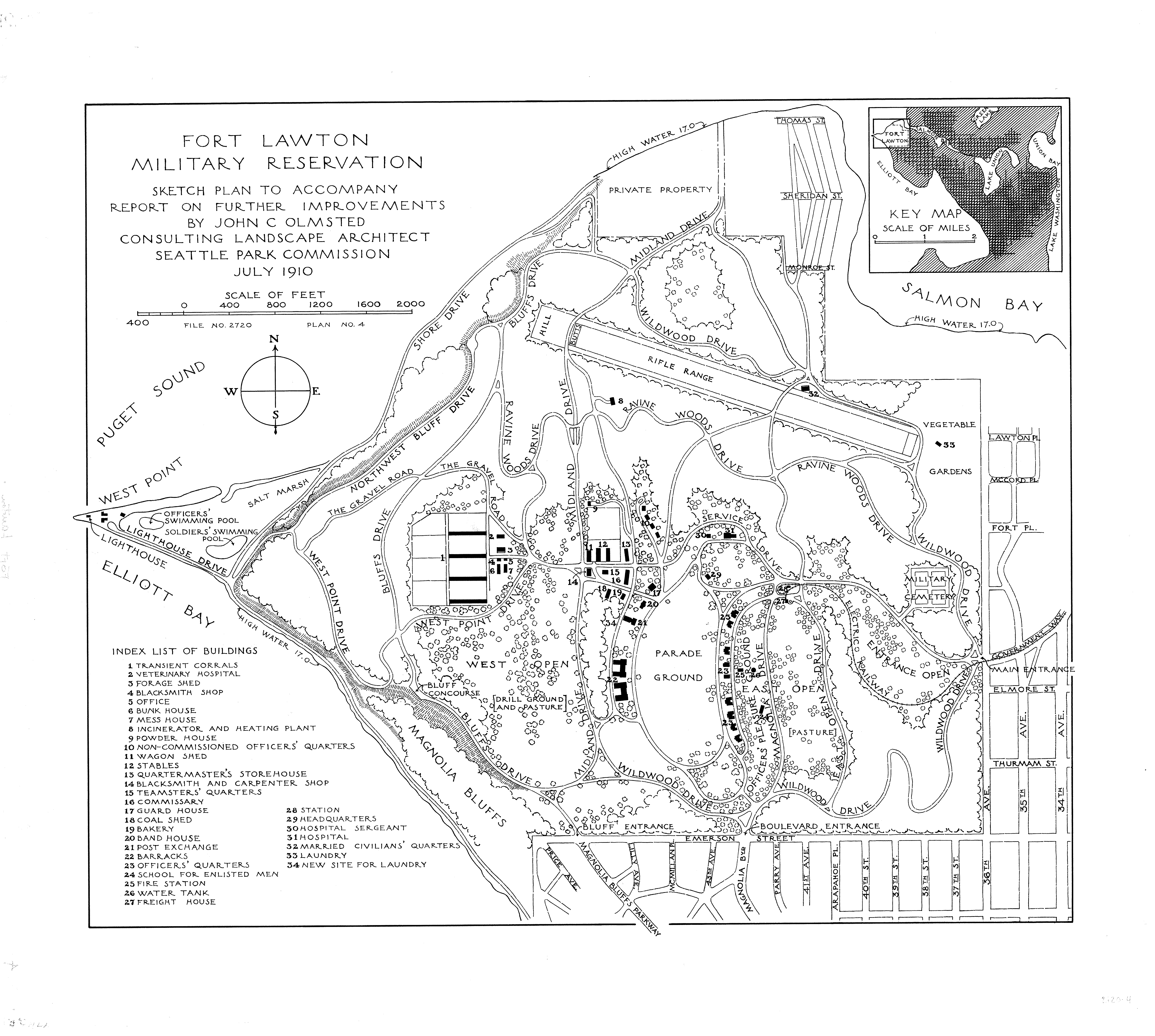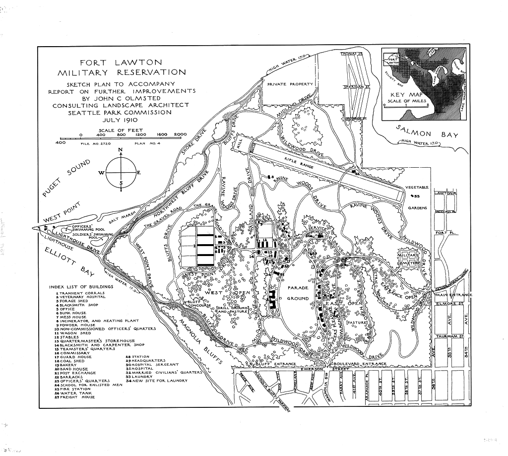 FORT LAWTON/ MILITARY RESERVATION/ SKETCH PLAN TO ACCOMPANY/ REPORT ON FURTHER IMPROVEMENTS/ BY JOHN C. OLMSTED/
