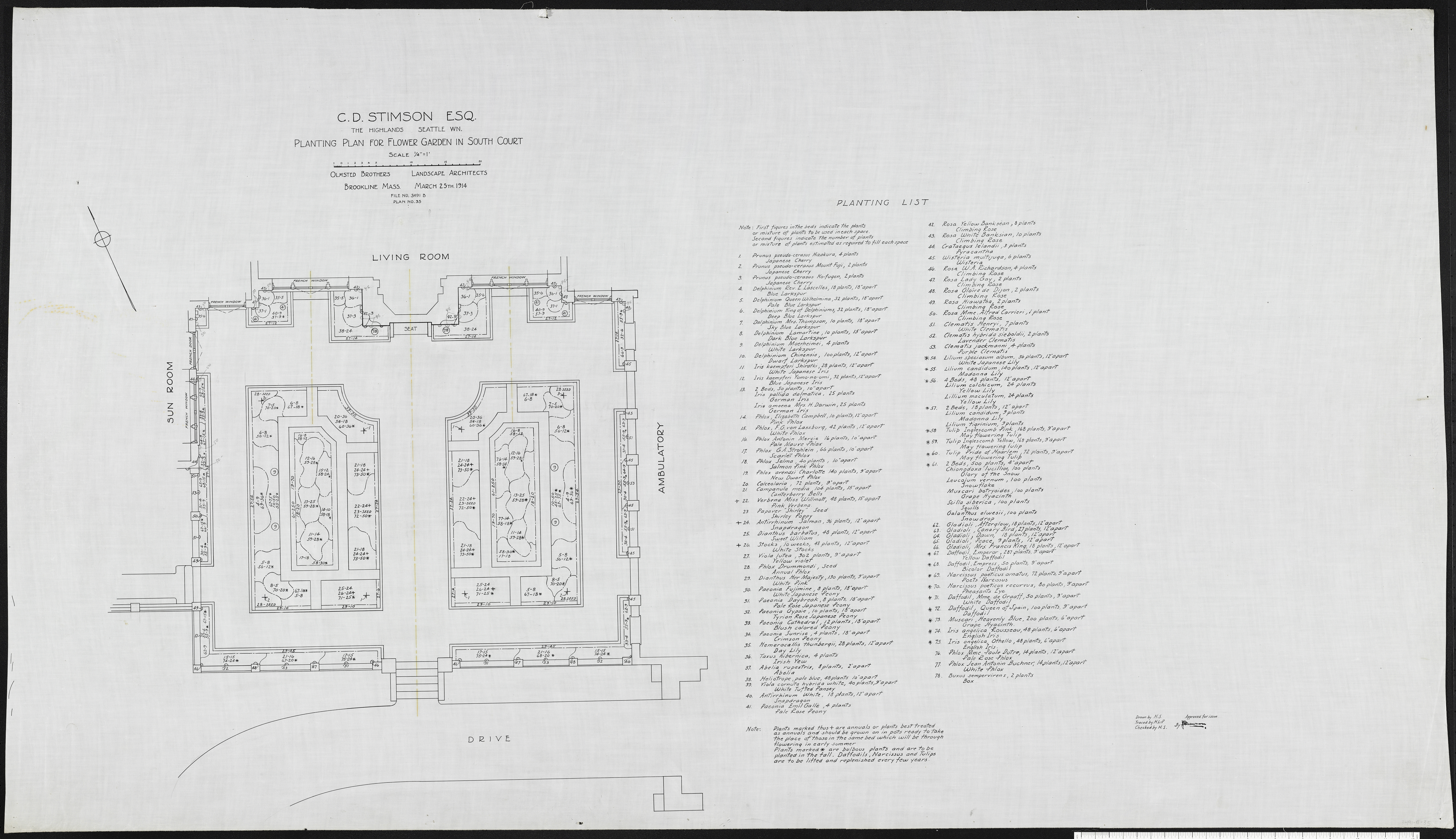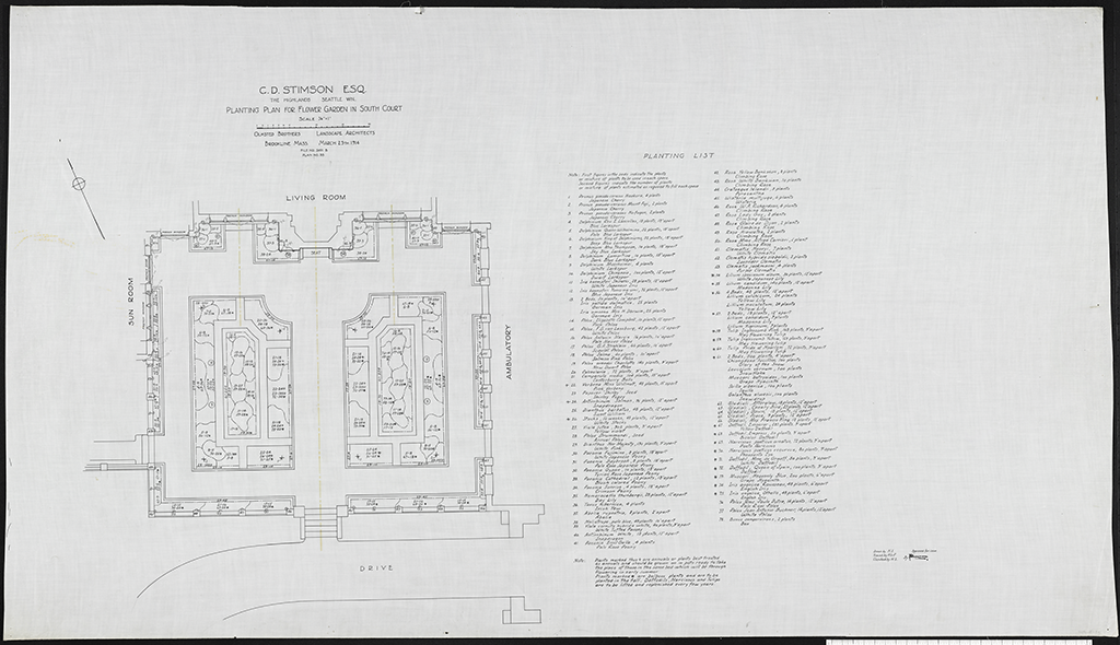 C.D. Stimson, Esq./ The Highlands, Seattle, WN./ Planting Plan for Flower Garden in South Court [r]/