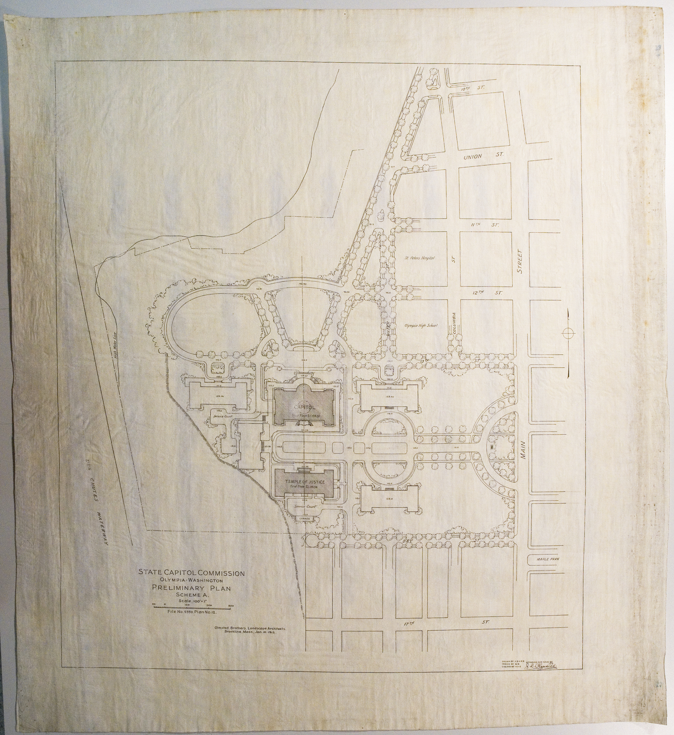 PROVENANCE: OB/LA; DR. BY H. B. [H. H. B.] & W. M. (WILLIAM MILLNER?); APPROVED FOR ISSUE BY J. C. OLMSTED [JCO]; AND "BLOSSOM" [PI]. DATE INFO: 18-JAN-1912; 11-JAN-1912 [PI].
