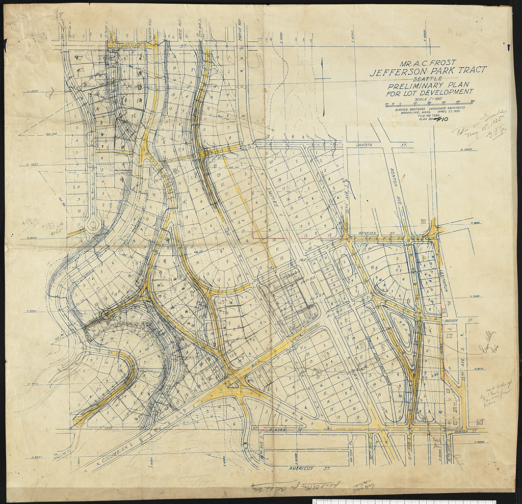 A. C. FROST, JEFFERSON PARK TRACT, SEATTLE, WA - PRELIMINARY PLAN FOR LOT DEVELOPMENT; NOTES ON GROUNDS