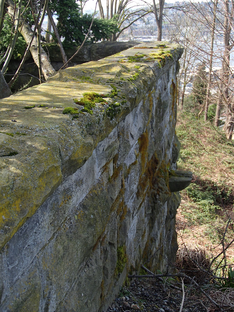 Detail showing what J. C. Olmsted describes in his November 1906 field notes as 'good random rock faced ashlar sandstone.' {Structure}