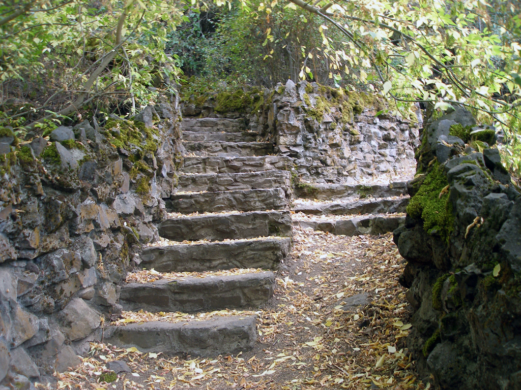 Rustic stone stairs in Liberty Park in Spokane. {Circulation - Structure}