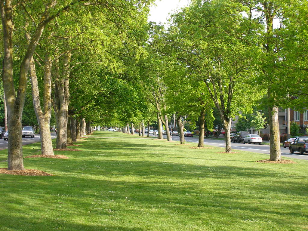 Ravenna Boulevard median connects Green Lake to Cowen and Ravenna Parks and 17th Avenue. {Spatial Organization - Vegetation - Circulation-Boulevard}