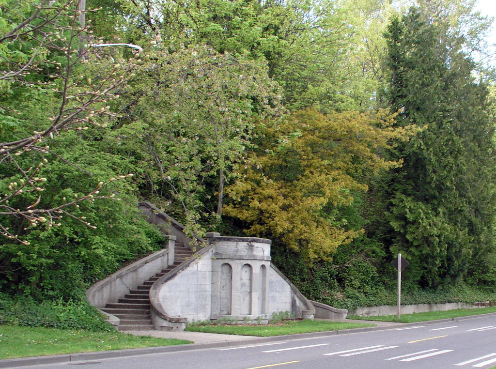 Dose Terrace stairs connect the neighborhood developed by Mr. Dose to the shore of Lake Washington at Colman Park. {Circulation-Boulevard - Structure}