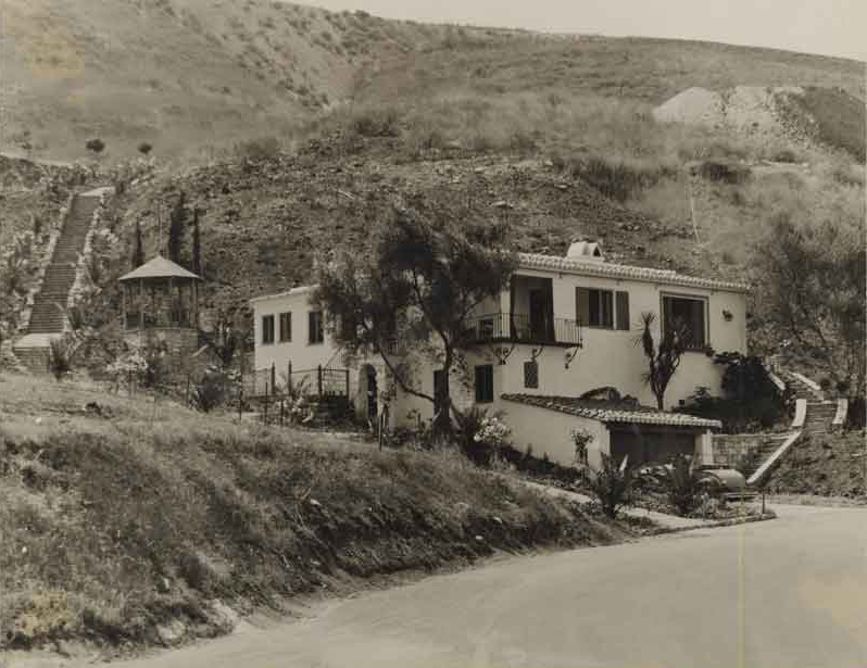 Palos Verdes Estates includes a network of pathways as shown here climbing up the Somonte Canyon. Courtesy of Palos Verdes Homes Association Photograph Collection. {Vegetation - Circulation - Structure - Building} [PVLD:3660 (000018671)]