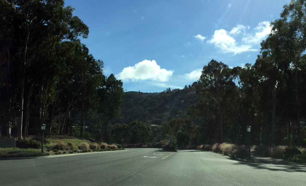The north entry to Palos Verdes Estates matches Frederick Law Olmsted jr's 1922 sketch which showed his intent 'to plunge directly into the wood of Eucalyptus.' See Document from Palos Verdes Homes Association (PVHA) of F.L. Olmsted, jr. description and sketch (05950_PVHA_Palos Verdes North Entrance). {Vegetation - CIrculation}