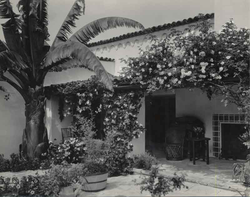 Detail view of original Stein residence with enclosed stone patio and garden. Site has been redeveloped. Courtesy of Palos Verdes Homes Association Photograph Collection. {Vegetation - Building} [PVLD:4284 (000017517)]