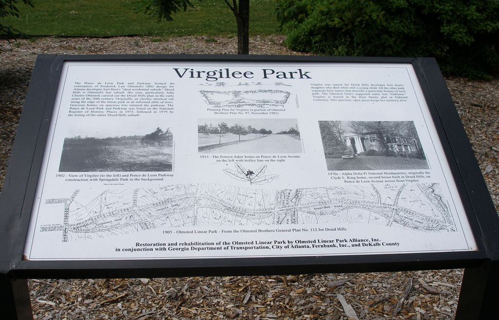 Virgilee Park sign with text, plan and photos. {Site Furnishing}