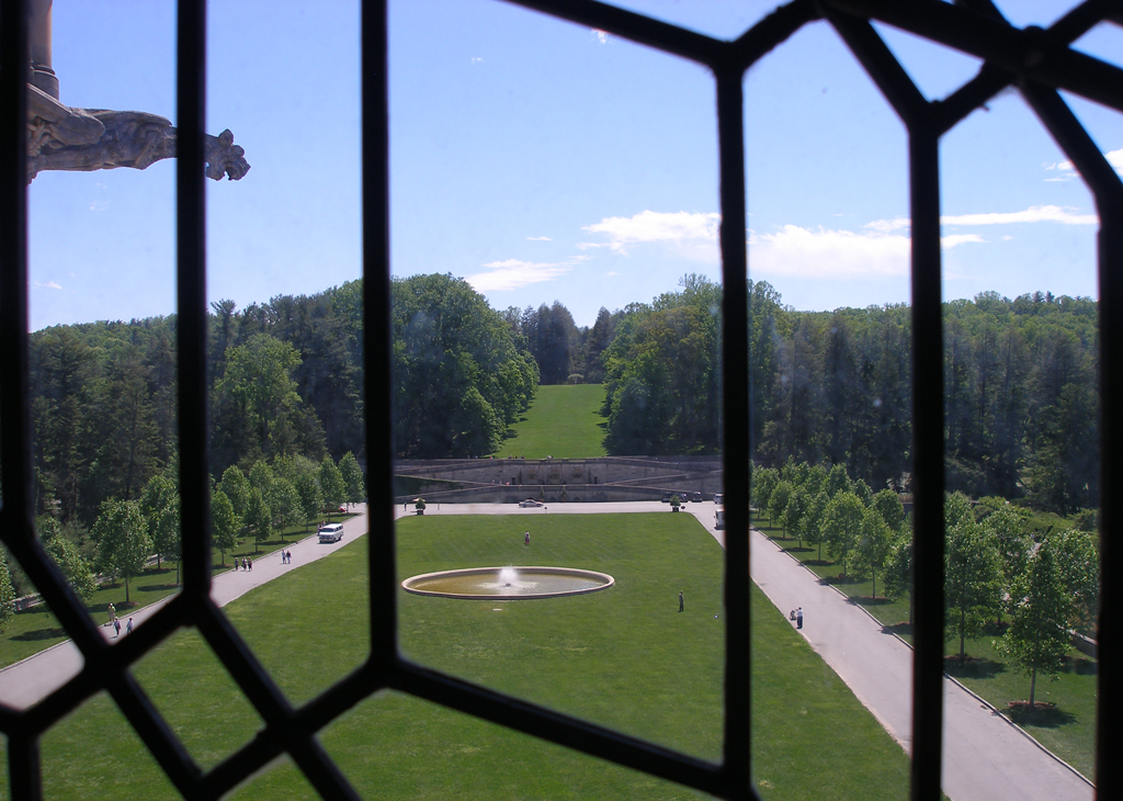 Vista from Biltmore Mansion of lawn and Ramp Douce. {Spatial Organization - Topography - Circulation - Water Feature - Structure - Building}