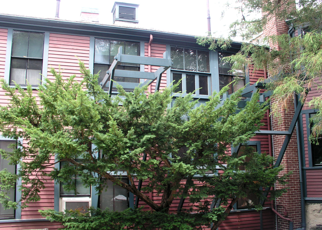 Exterior racks at Fairsted used by the Olmsted firm for making sunprints. {Building}