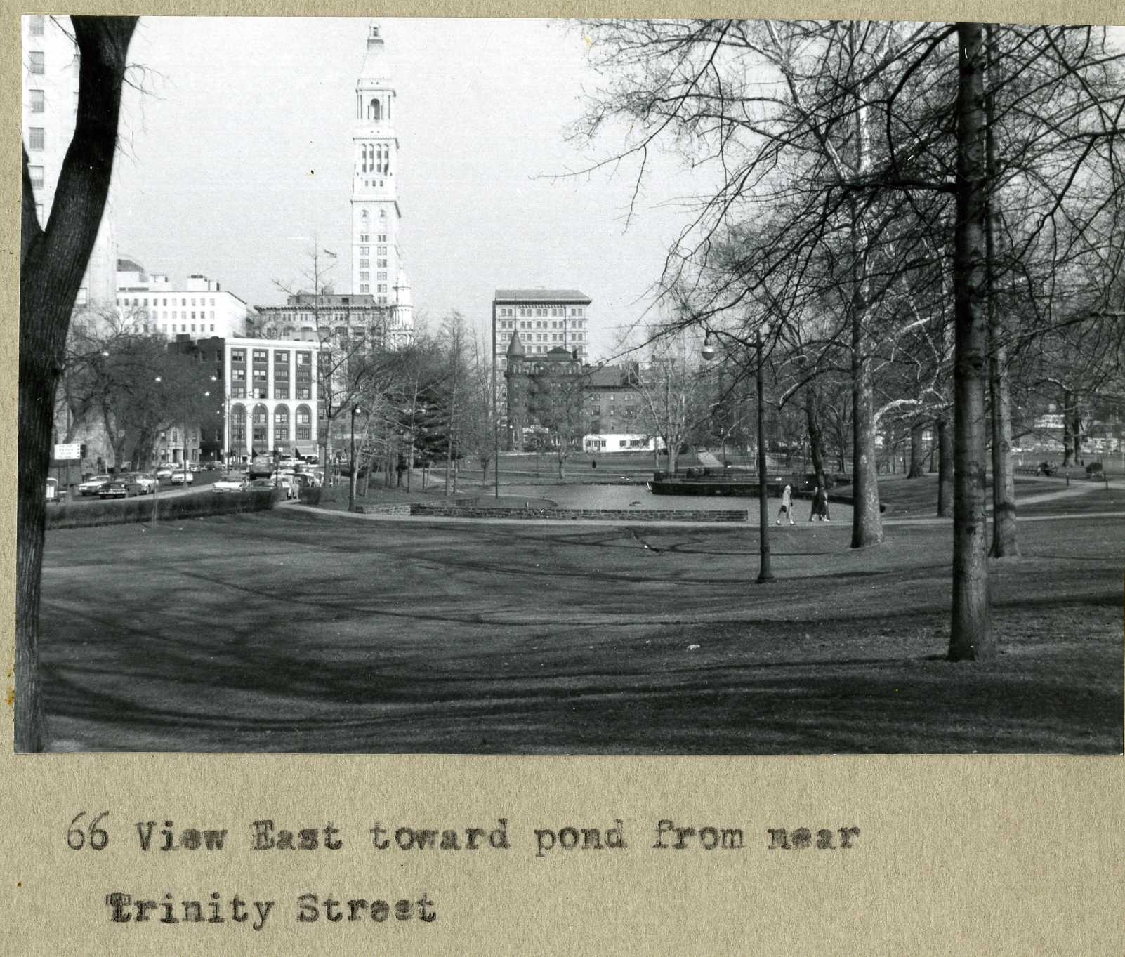 1960 View East toward pond from near Trinity Street taken by Mr. Hudak. {Water Feature} [photo album 00801-01-ph66]