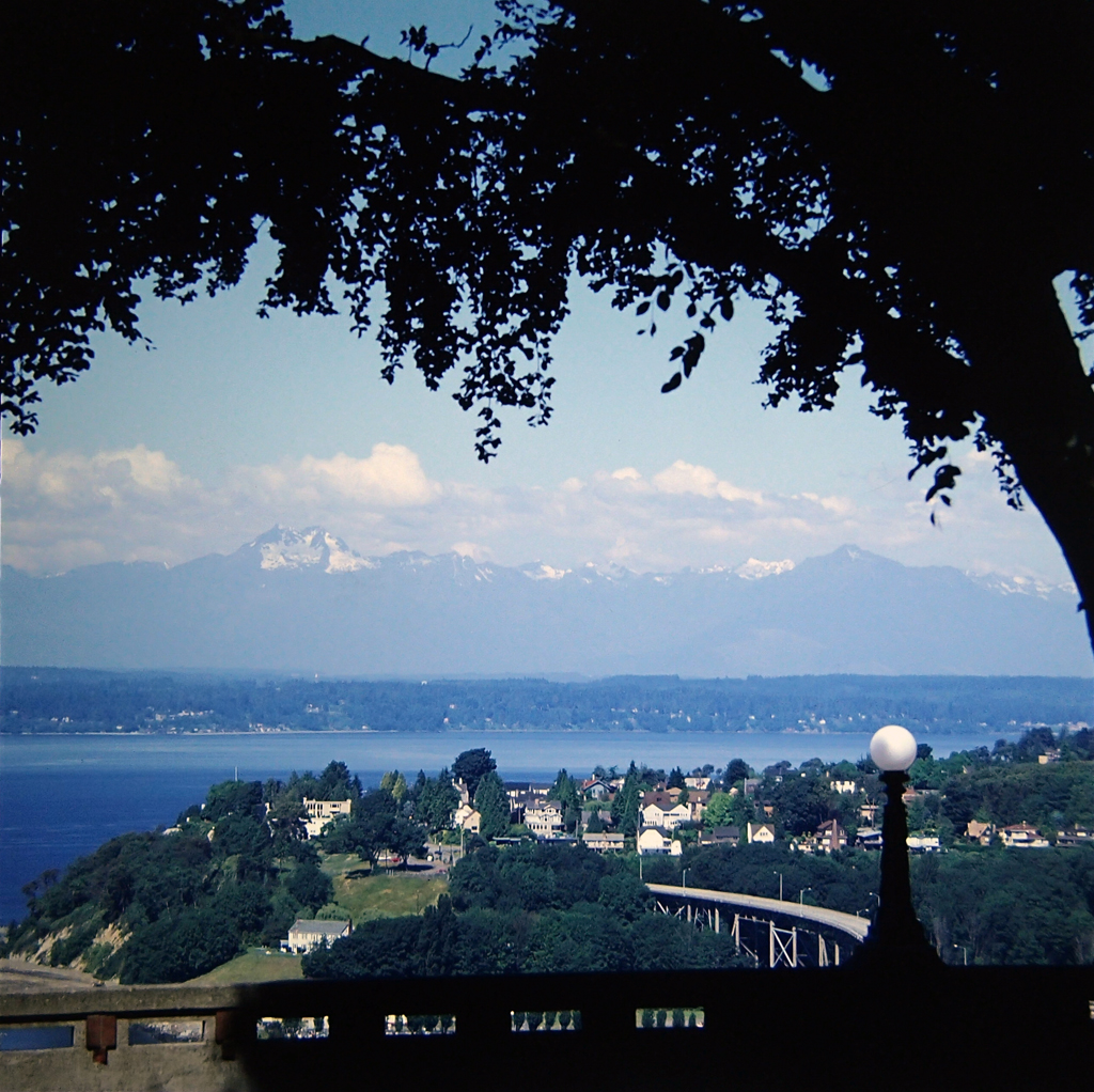 View from Queen Anne Boulevard toward Magnolia, Puget Sound and the Olympic Mountains. {Topography - Vegetation - Structure - Site Furnishing}
