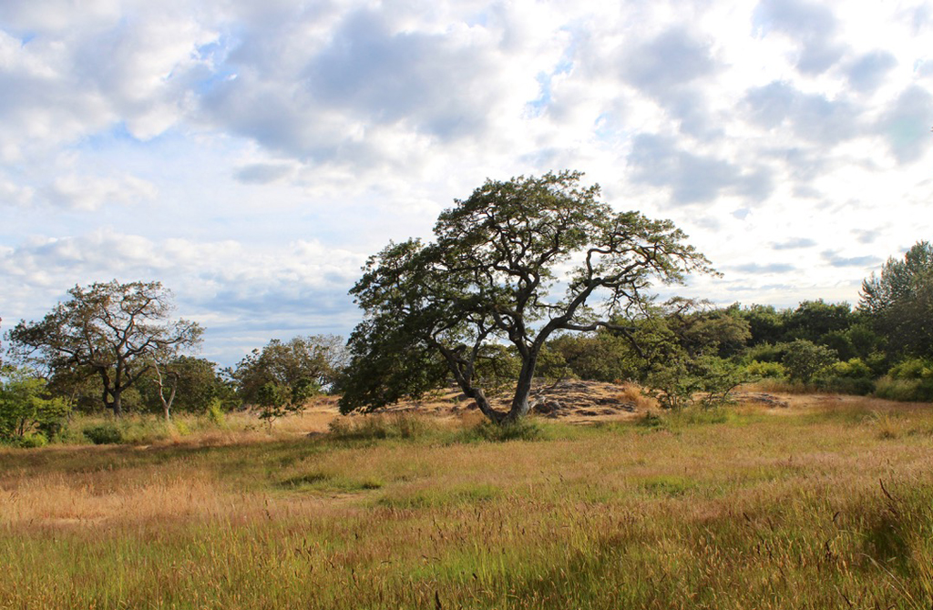 View of Uplands Park showing the Garry oak meadow ecosystem that inspired John Charles Olmsted to take on the subdivision project. {Topography - Vegetation}