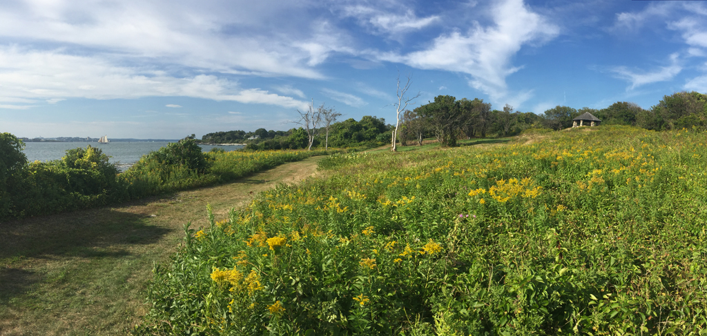 F.L. Olmsted Sr. recommended in his 1883 report that over 100 acres be held im common including all the outer parts of the island with the common property enlarged at its "more interesting points" and "to allow continuous foot paths following the shore." {Vegetation - Circulation - Structure}