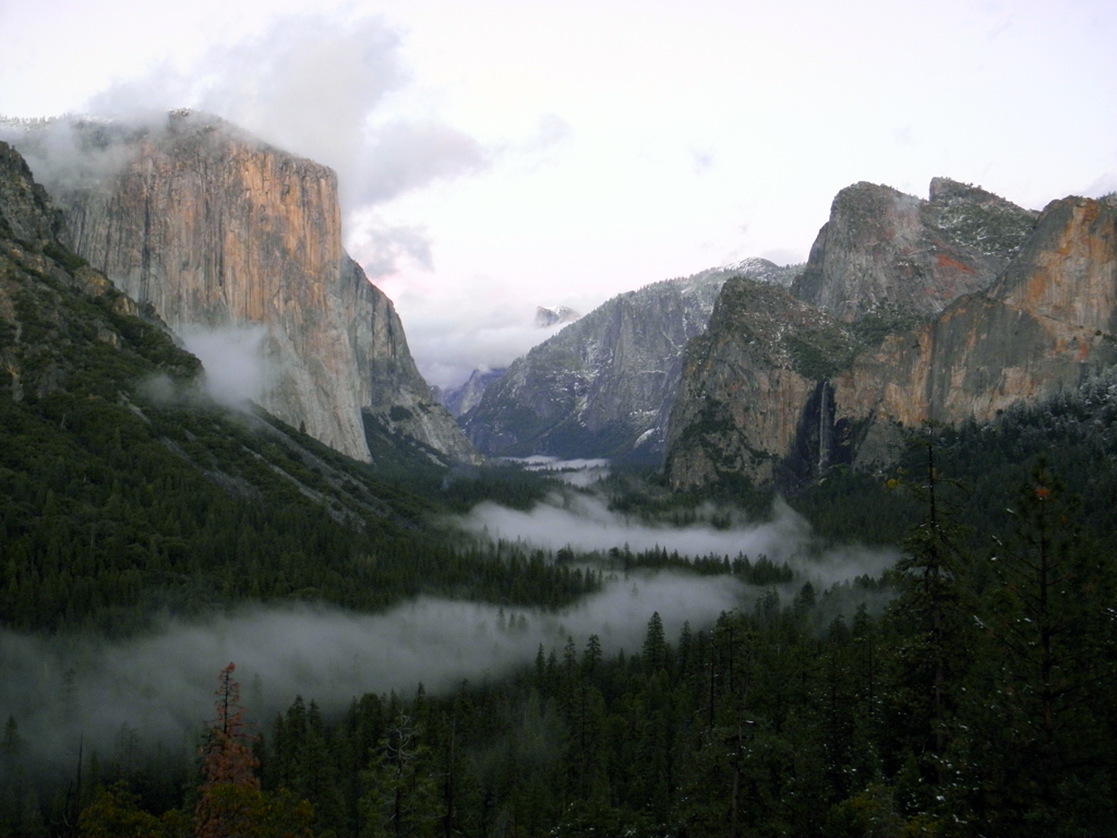 Yosemite Valley from Artist Point is inspiring in any season. F.L. Olmsted and his family first visited the valley in August 1864. The family camped for three weeks across from Yosemite falls. The final week, accompanied by twelve-year-old John C. Olmsted, he explored the High Sierra, riding through Toulomne Meadows to the mountains to the east. {Spatial Organization - Vista - Topography - Vegetation}