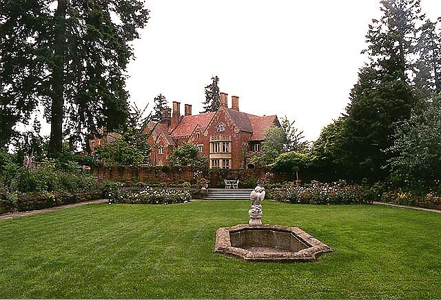 Color print of the grounds and mansion at Thornewood estate. Photograph by Richard Mirau. Courtesy of Smithsonian Institution, Archives of American Gardens, The Garden Club of America collection. Mirau, Richard, Photographer. {Topography - Vegetation - Building} [WA005044]