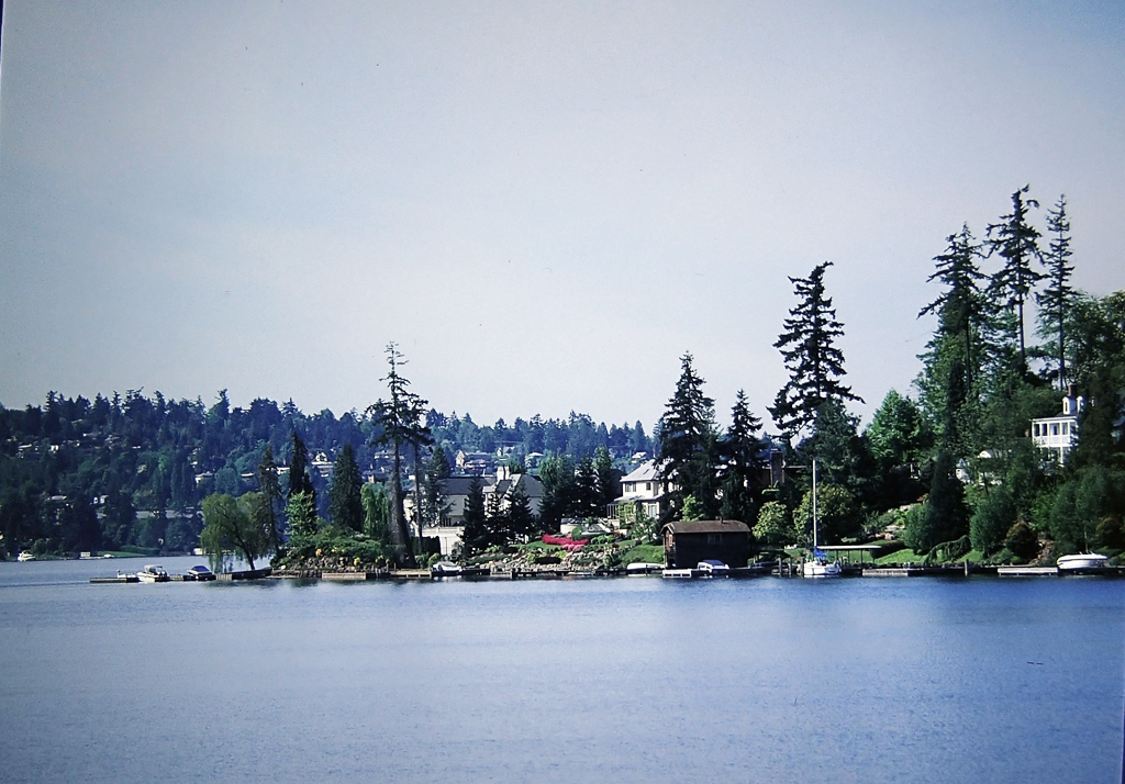 Site of Wight development. {Vegetation - Water Feature - Building}