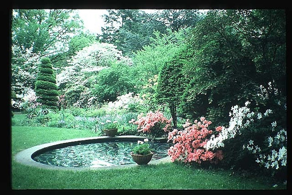 "Boxly" pond. Courtesy of Smithsonian Institution, Archives of American Gardens, The Garden Club of America collection. Photo by Frederick W. G. Peck. {Vegetation - Water Feature} [PA009051]