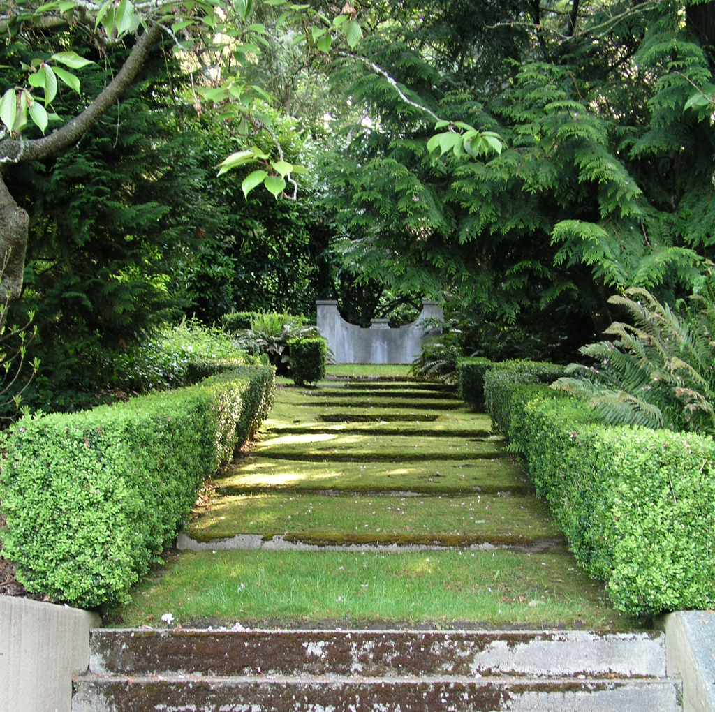 Ballinger fountain vista walk looking east. {Vegetation - Circulation - Structure}