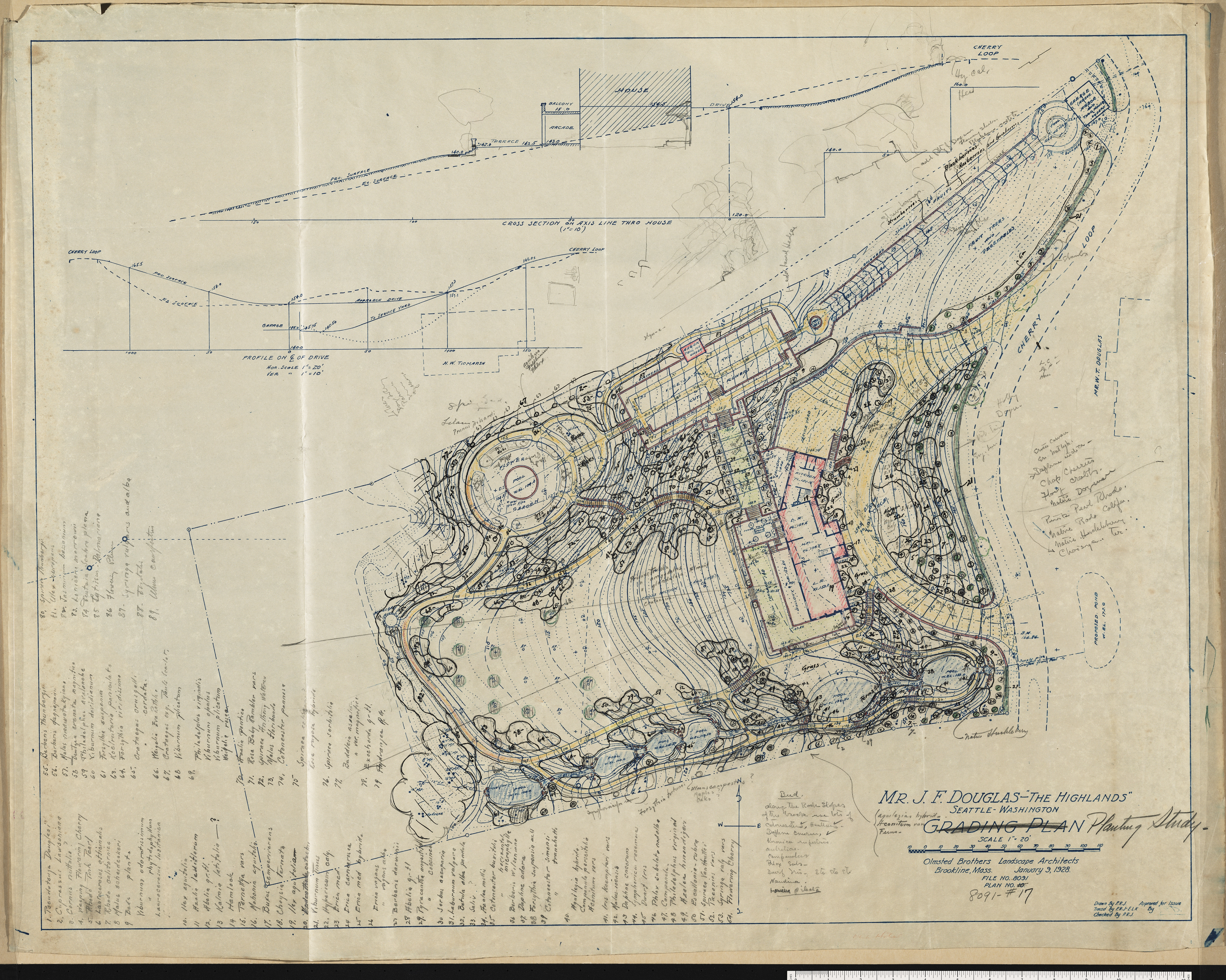 MR. J.F. DOUGLAS/ THE HIGHLANDS/ SEATTLE, WA/ GRADING PLAN (CROSSED OUT SUPERCEDED BY) PLANTING STUDY/