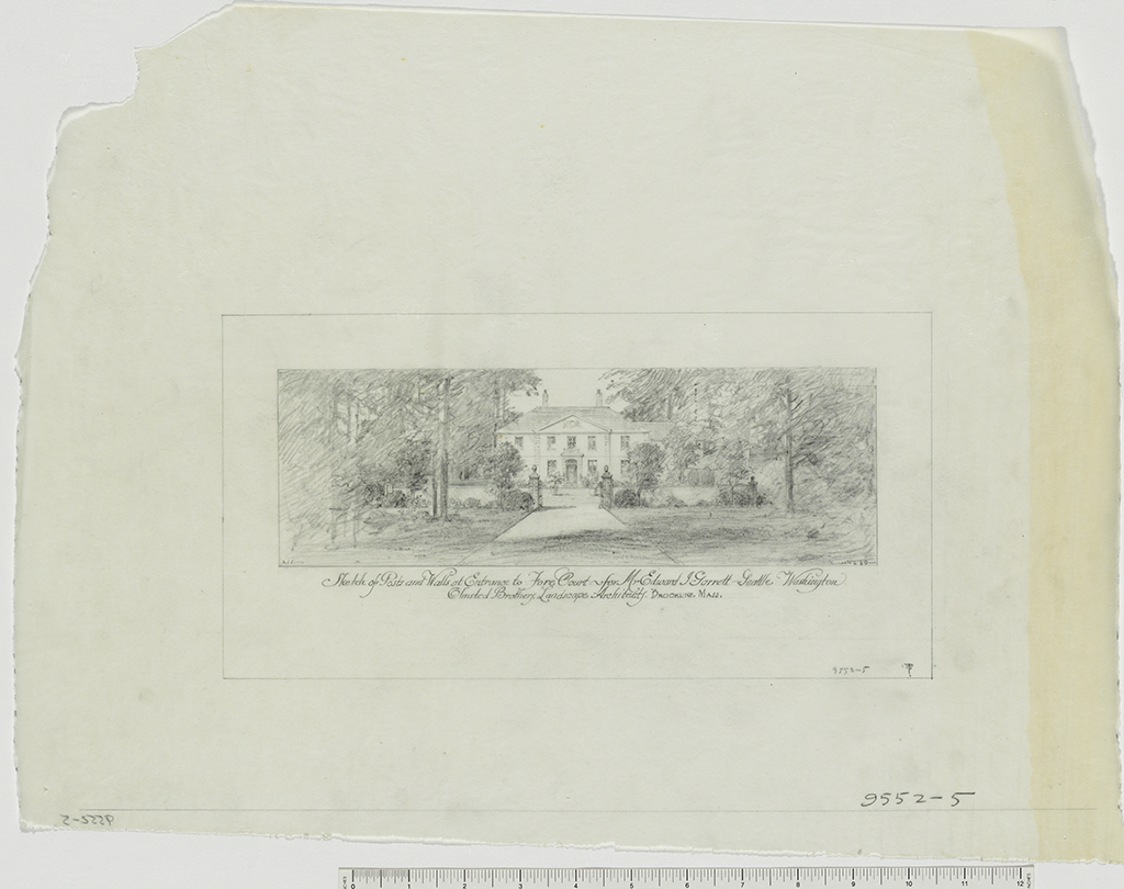 Sketch of Posts and Walls at Entrance to Fore Court for Mr. Edward I. Garrett, Seattle, Washington