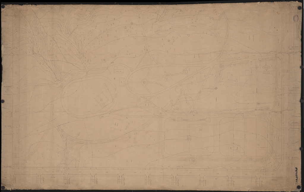 This print of the Decenber 1909 survey by the Northwestern Engineering Corp was issued by the Olmsted firm February 21, 1910, and includes the firm's recommendations for circulation improvements (see Preliminary Study by J.C. Olmsted (02694-2)). [02694-01-sh1_SMA (SMA 2335)]