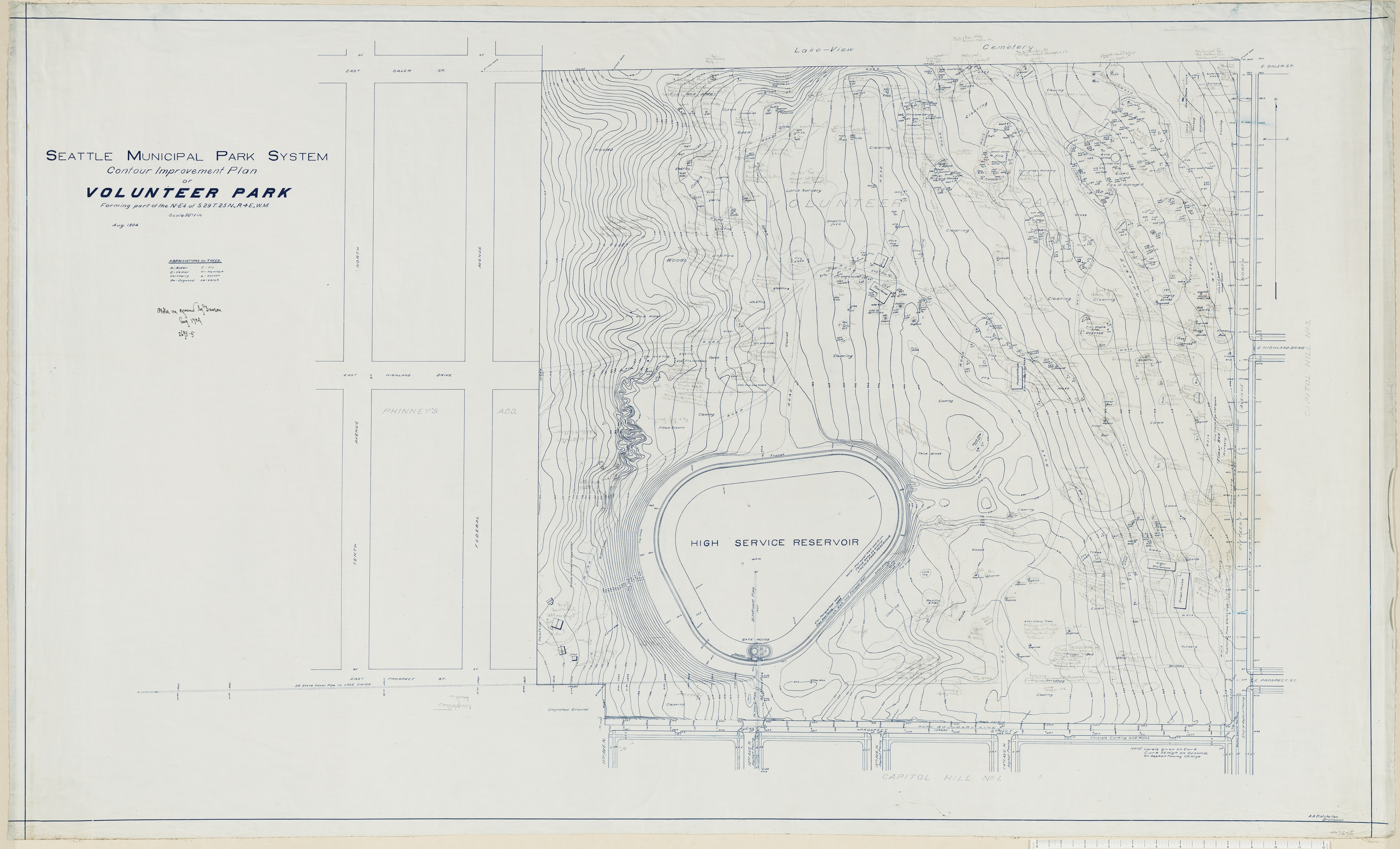 Seattle Municipal Park System/ Contour Improvement Plan/ of / Volunteer Park/ Forming Part of the N-E 1/4 of S.29T.25N.R.4E.WM [orig]/;