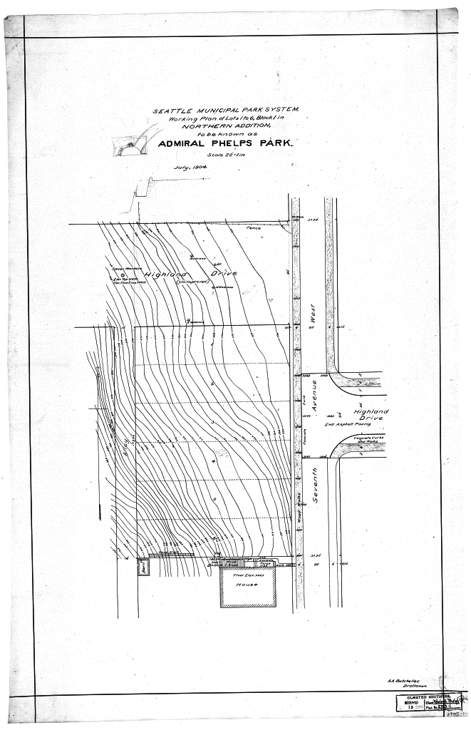 Seattle Municipal Park System Working Plan of Lots 1 to 6 Block 1 in Northern Addition to be known as Admiral Phelps Park