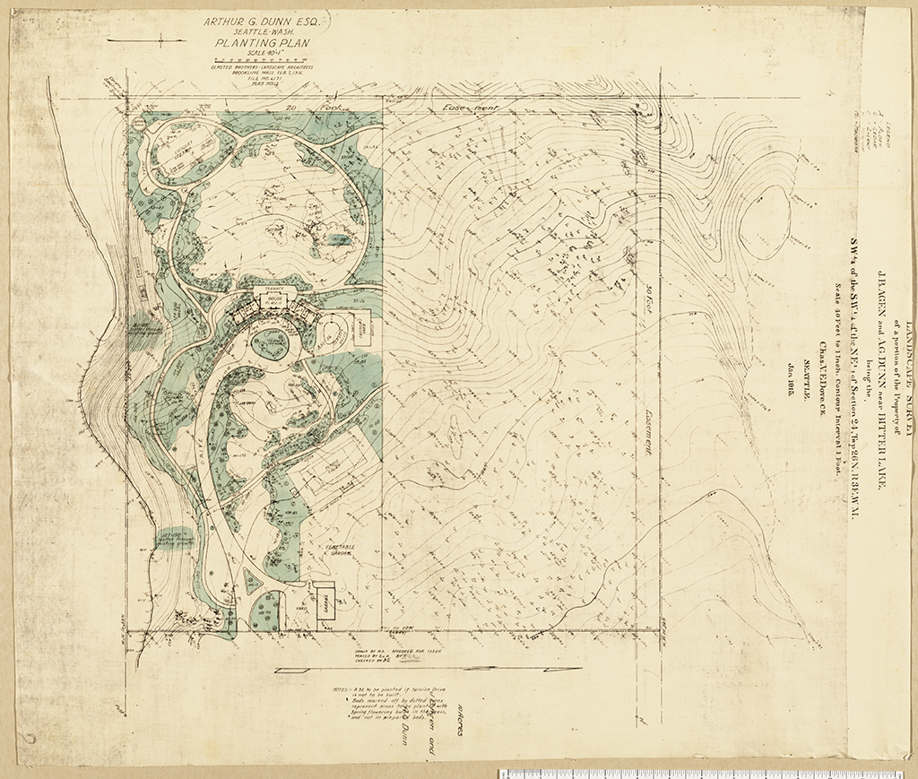 J. B. AGEN & A. G. DUNN, ... BITTER LAKE, [SEATTLE, WA] - PLANTING PLAN; LANDSCAPE SURVEY OF A PORTION OF THE PROPERTY OF ...