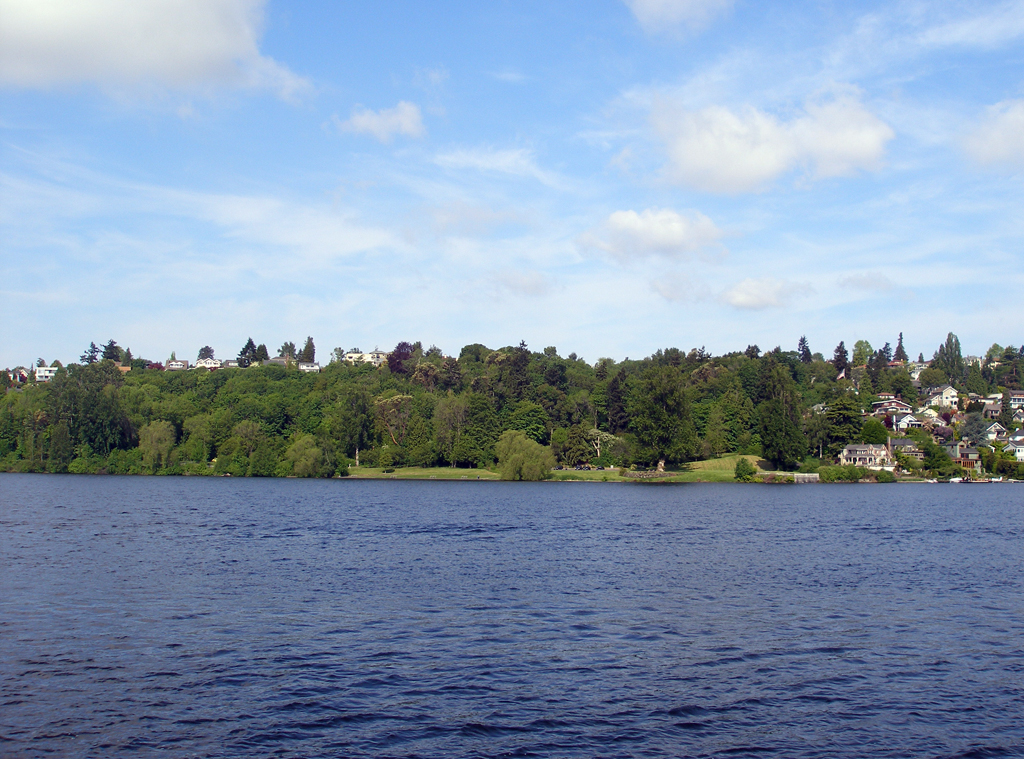 Colman Park stretches along the shore of Lake Washington and incorporates a ravine westard to the crest of the ridge. {Vegetation}