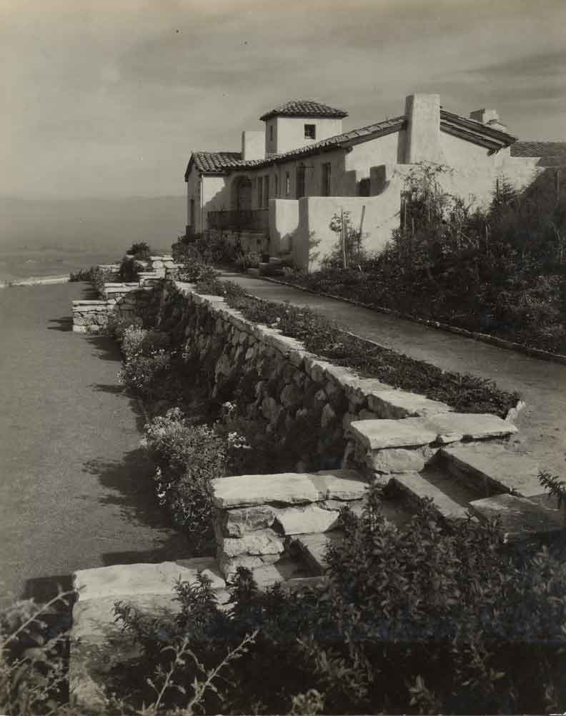 View along west side of house. Side yard now built on. Courtesy of Palos Verdes Homes Association Photograph Collection. {Vegetation - Structure - Building} [PVLD:5310 (000019323)]