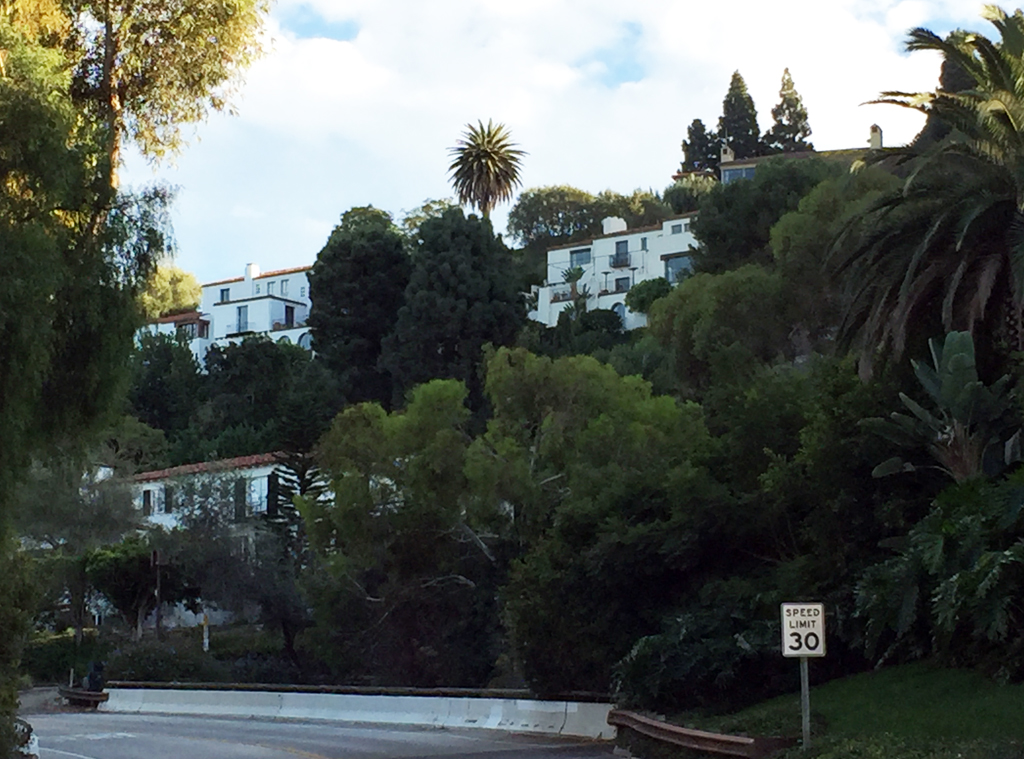 The Sutherland residence is set on a steep hillside (on the right) and was designed by Kirtland Cutter who had worked closely with John Charles Olmsted and James Frederick Dawson in the Pacific Northwest.