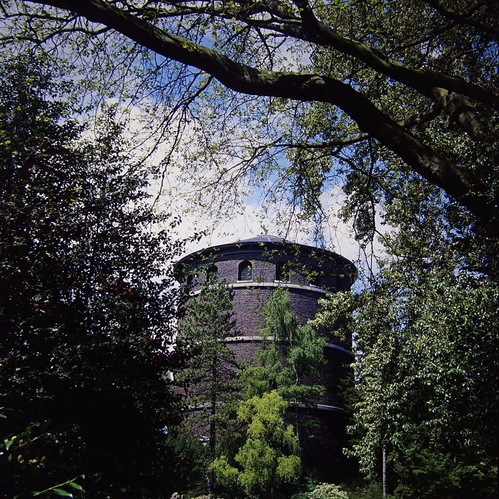 Volunteer Park Water Tower built in 1906 was located where JC Olmsted recommended in order to be on axis with the lily ponds and Concourse. {Vegetation - Structure}