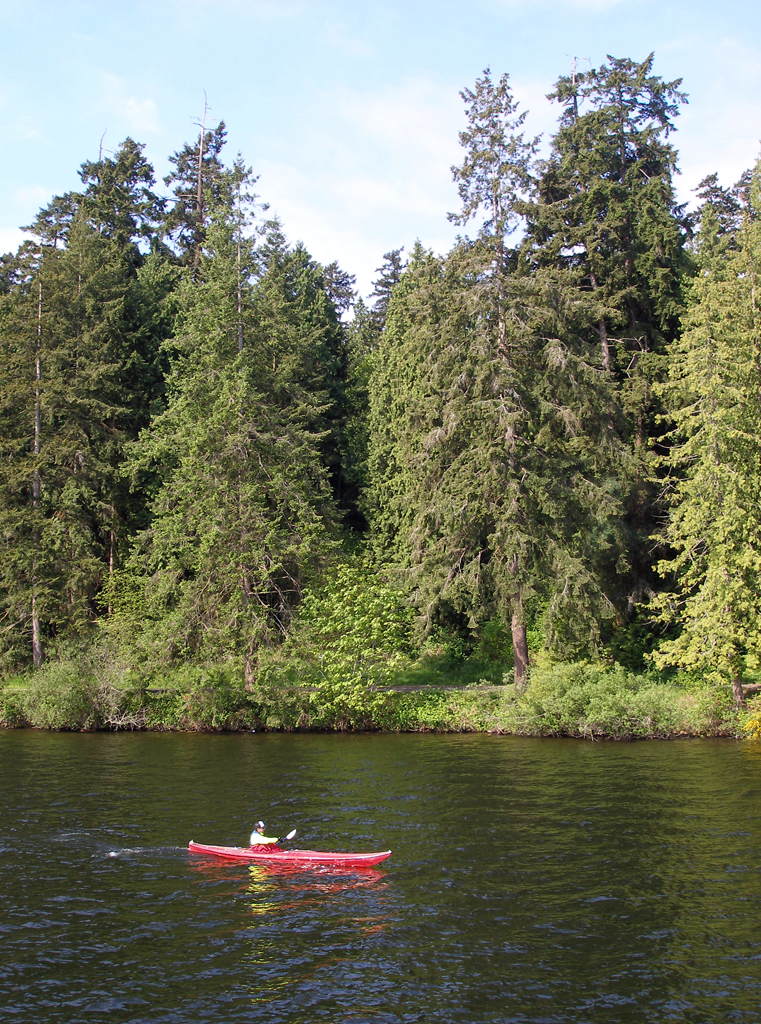 Seward Park on the shore of Lake Washington has extensive old growth forest. {Vegetation}