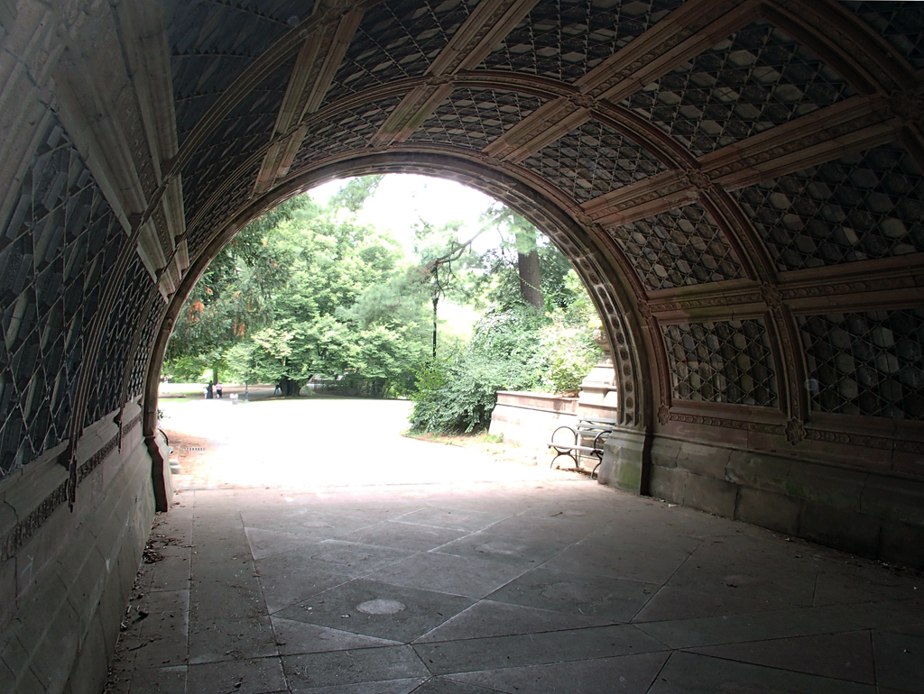 Prospect Park's archway tunnels provide pedestrian access to the heart of the park and the Great Lawn beyond. (Vegetation - Circulation - Structure)