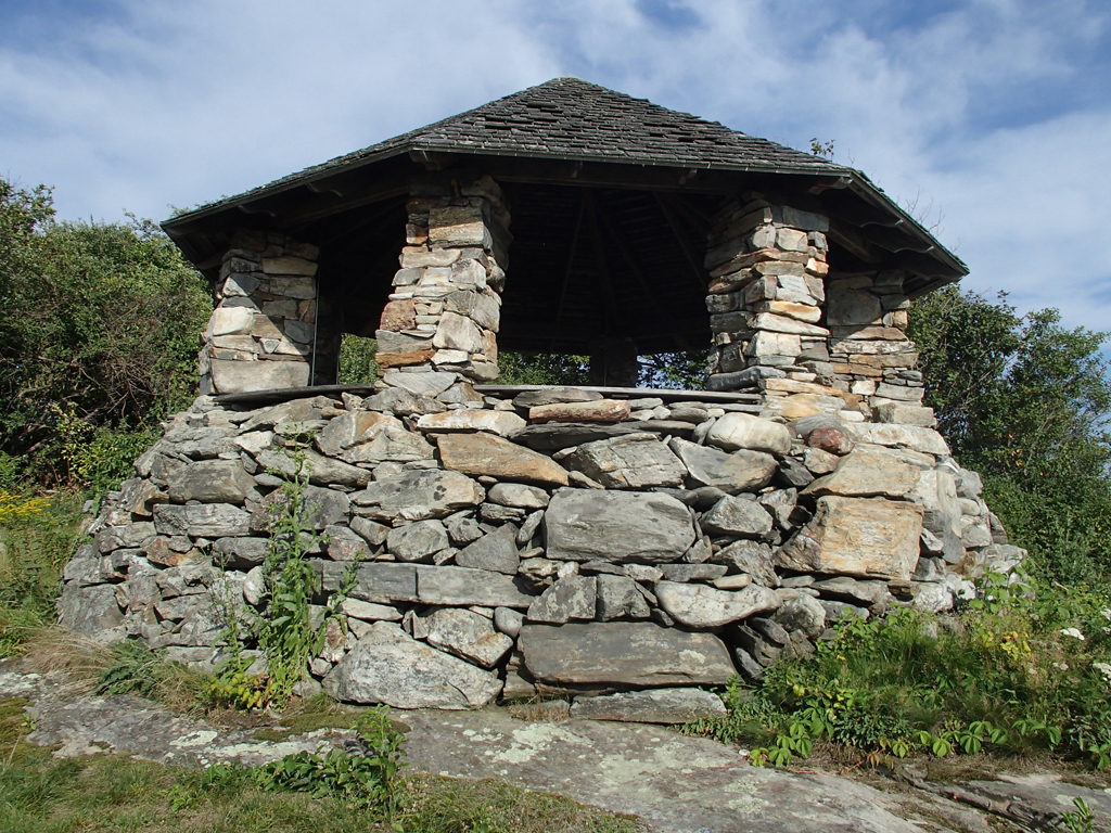 The Point Gazeo was designed in 1886 by J.C. Stevens. His sketch showed rounded boulders, but the stone that was used, as F.L. Olmsted Sr had noted as being abundant in his 1883 report, was flat, horizontal slabs from the site. {Structure}