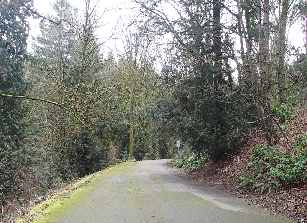 Interlaken Boulevard winds through the wooded slopes of the northern edge of Capitol Hill. {Vegetation - Circulation-Boulevard}