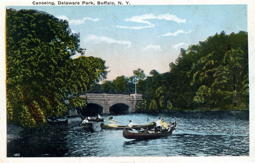 The 46-acre Lake or Gala Water in Delaware Park, designed c. 1870, was one for the largest water bodies included by Olmsted and Vaux in a park. As Olmsted predicted in his original report: “This water would be well adapted to the requirements of ornamental water fowl, to skating and boating; the groves adjoining it would furnish a cool place to be resorted to for rambling and rest on a hot day....” - C.E. Beveridge {Vegetation - Circuation - Water Feature}