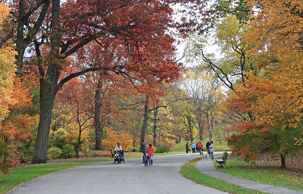 Visitors on Meadow Road in autumn. Courtesy of Jon Hetman. {Vegetation - Circulation}