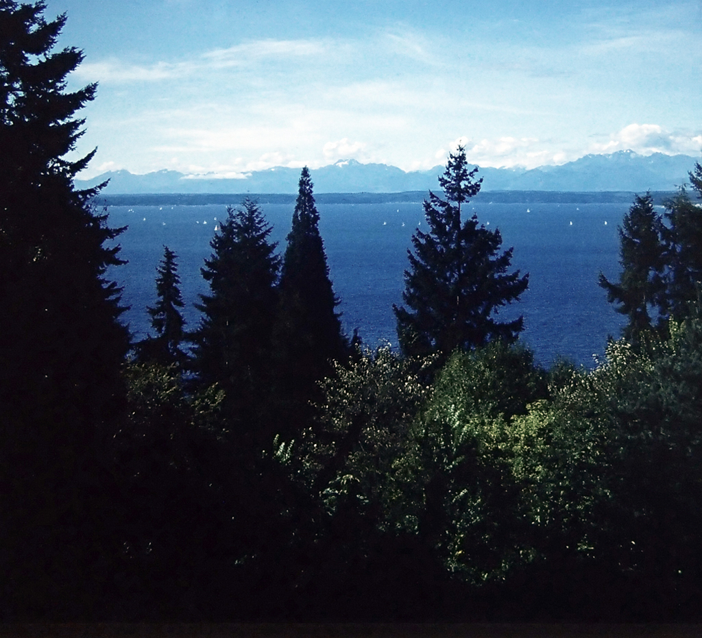 View of Puget Sound from the Highlands, the subdivision of Seattle Golf and Country Club. {Vegetation}